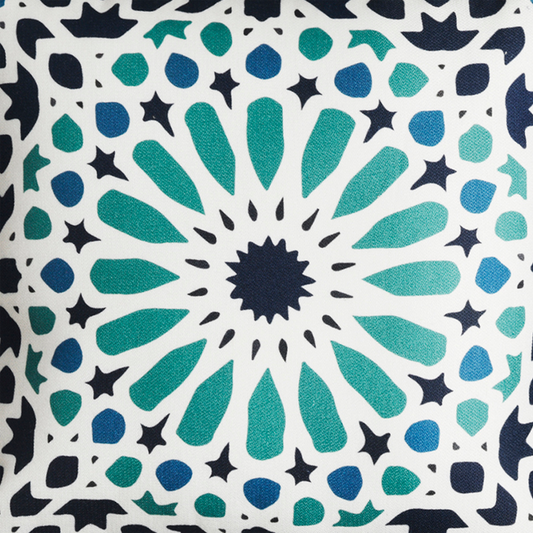 Mosaic - Multi Blue Tile Stain Resistant Indoor/Outdoor Pillow for Patio
