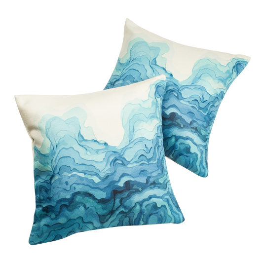 Watercolor Waves - Teal Stain Resistant Indoor/Outdoor Pillows for Patio (18" x 18" - Set of 2)