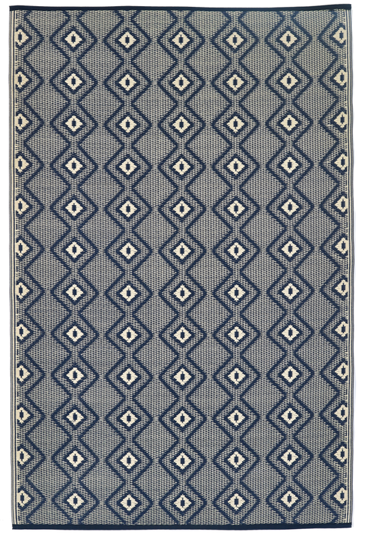 Rabat - Blue & Cream Boho Outdoor Rug for Patio FINAL SALE