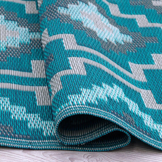 Lhasa - Teal Boho Outdoor Rug for Patio FINAL SALE