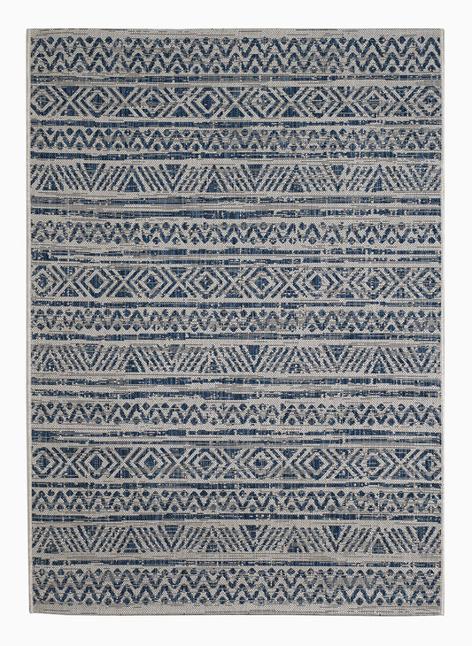 Cancun Shadow - Blue Striped Outdoor Rug for Patio