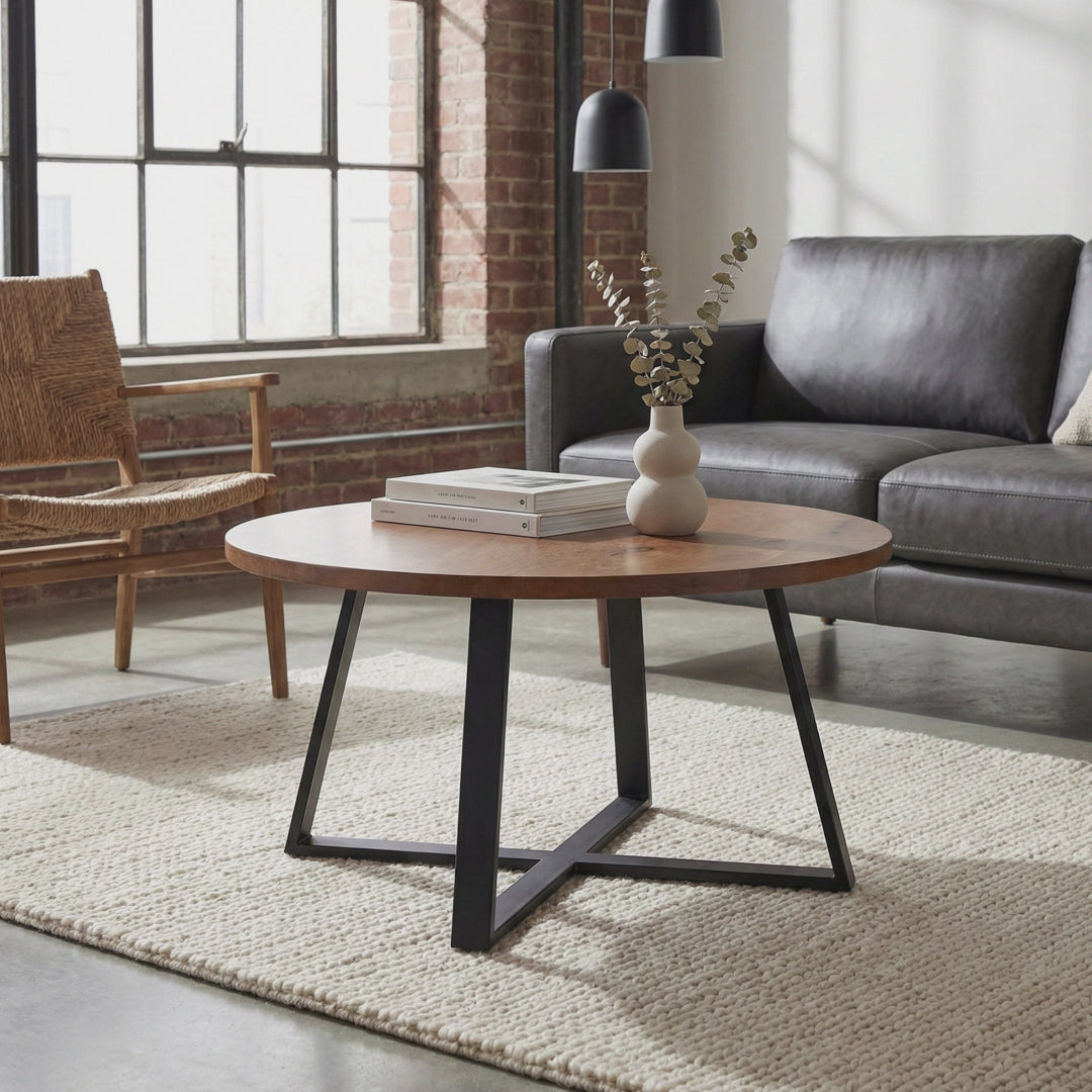 The Echo Coffee Table is handcrafted in India, blending functionality with a stylish modern design. This versatile round table is perfect for holding books, remotes, phones, and beverages, making it an ideal rustic centerpiece for your living room. This table is ideal for small spaces; perfect for an apartment, dorm or office. Constructed from durable mango wood with metal table legs, it offers both strength and elegance.