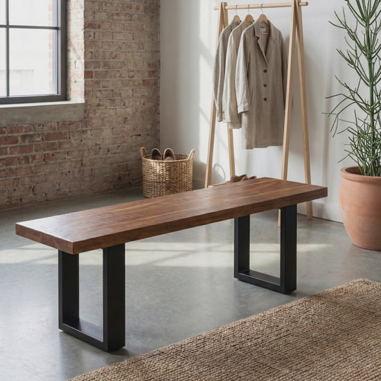 3 Seater Bench - 62" x 16" x 18" - Rustic Industrial Design - Combines rustic mango wood with sturdy iron legs, creating a timeless industrial aesthetic that complements modern, farmhouse, or rustic decor styles.