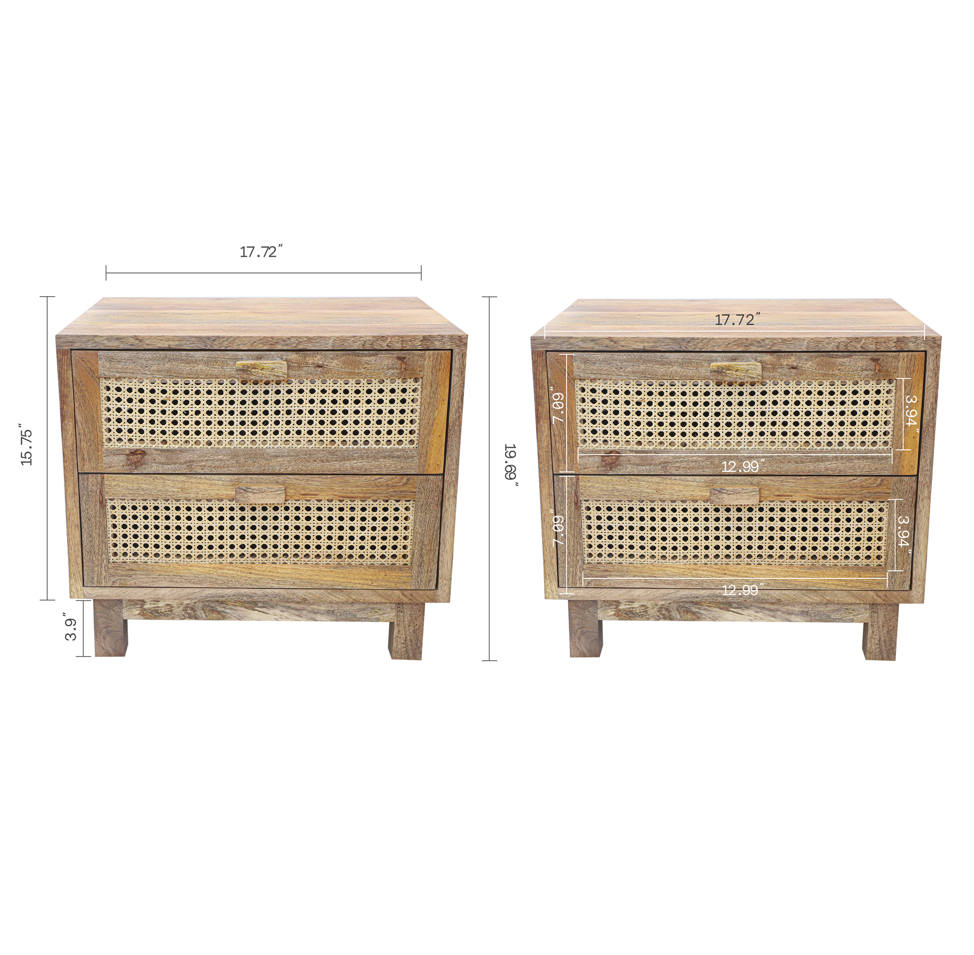 Flourish Coastal Mango Wood And Cane Side Table For Bedroom - Natural 20"