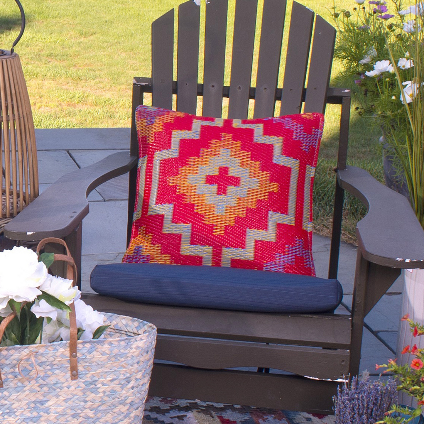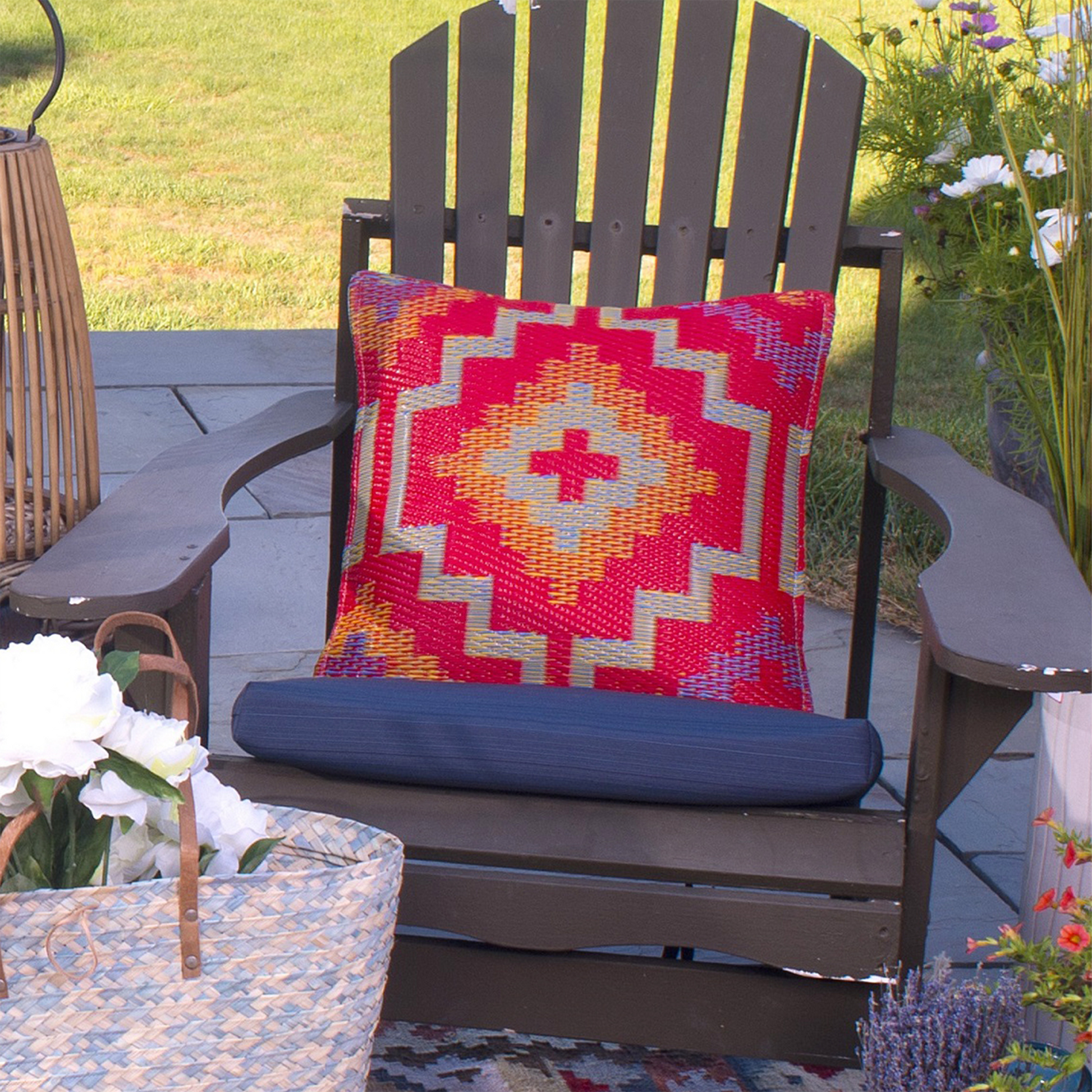 Bright, bold, and full of personality—the Lhasa Outdoor Accent Pillow – Orange & Violet is here to energize your space. Featuring a vibrant woven pattern in rich orange and violet tones, this eye-catching pillow adds a lively twist to patios, balconies, or indoor corners. Made from 100% recycled plastic tubes, it’s lightweight, comfy, and built to resist sun, mold, and everyday mess. Arrives vacuum-packed—just fluff it up and let the color and pattern take center stage.